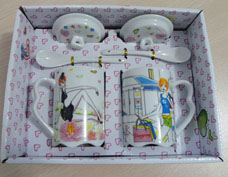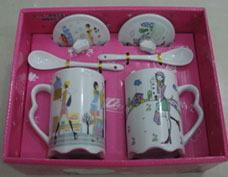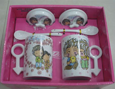 卡通配对系列广告杯采用骨质材料,杯体印制的是时尚漫画卡通图案,洋益着青春时尚体闲的气息。杯子一盒两只,配对使用。比较适合年轻人使用。本系列杯子采用的是优质骨瓷,可以达到很好的隔热效果,因此具有防烫作用。